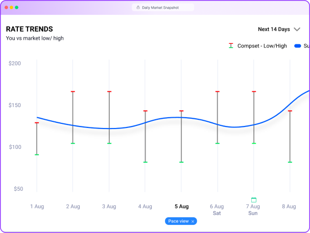 Go beyond daily rate checks. Benchmark your rates, monitor competitor movements, and act on demand signals so you can make every pricing decision with clarity and confidence